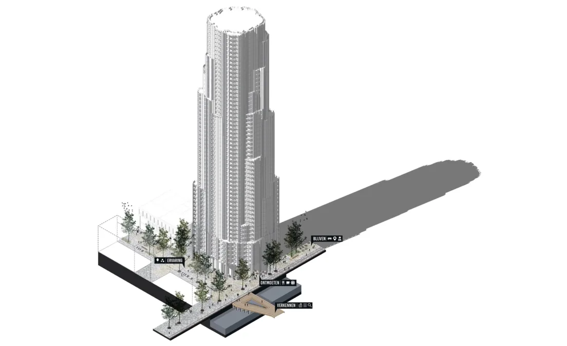 The 220-meter-high tower was designed by SHoP Architects from New York. The redevelopment of the historic factory was designed by Office Winhov in collaboration with Crimson Historians & Urbanists. The outdoor spaces, parks, and quays were designed by DELVA Landscape Architects & Urbanism. These internationally renowned players have created a beautiful ensemble through their collaboration.