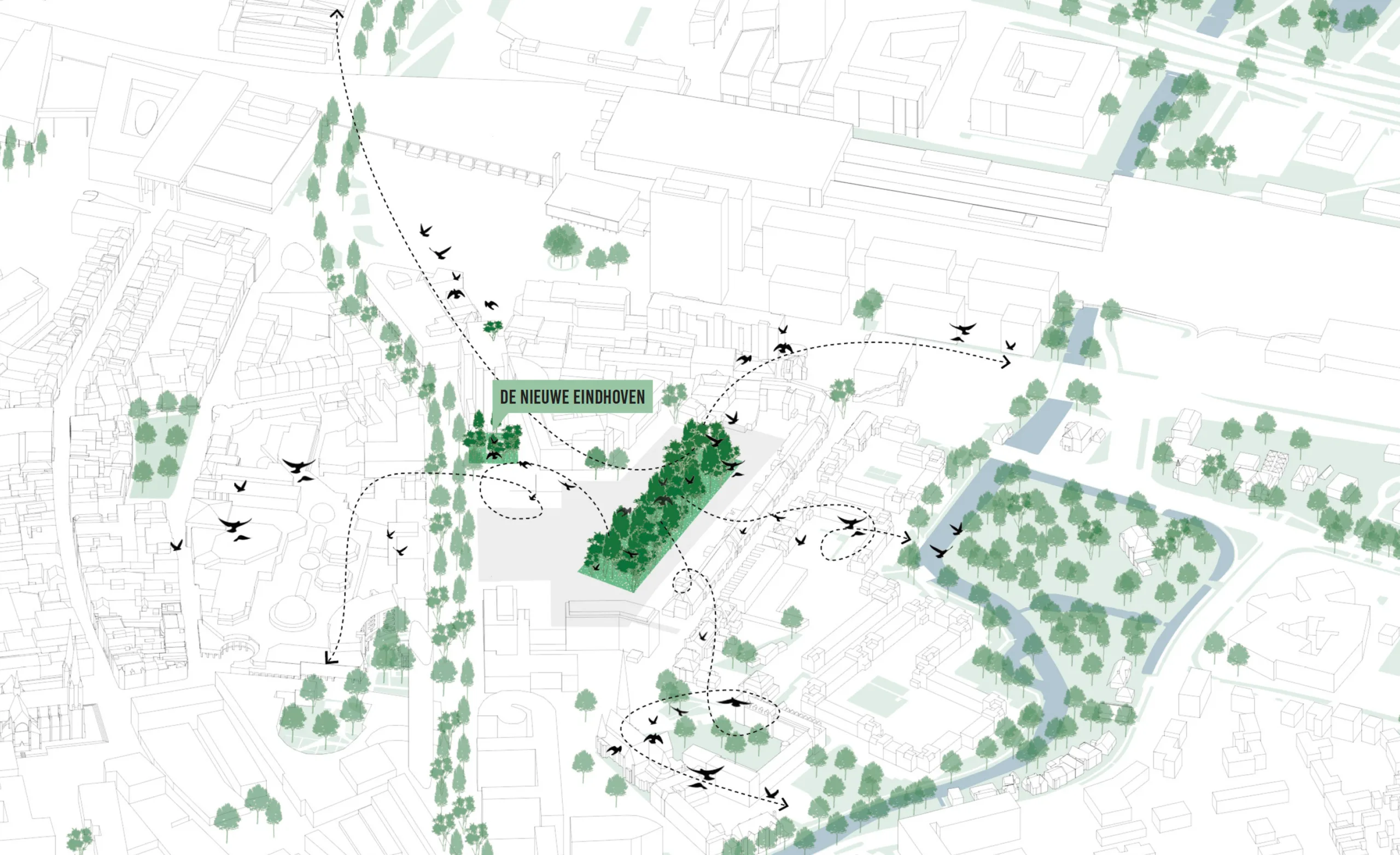 De Nieuwe Eindhoven vormt samen met de groene Vestdijk een belangrijke schakel in het ecologische systeem van de Eindhovense binnenstad