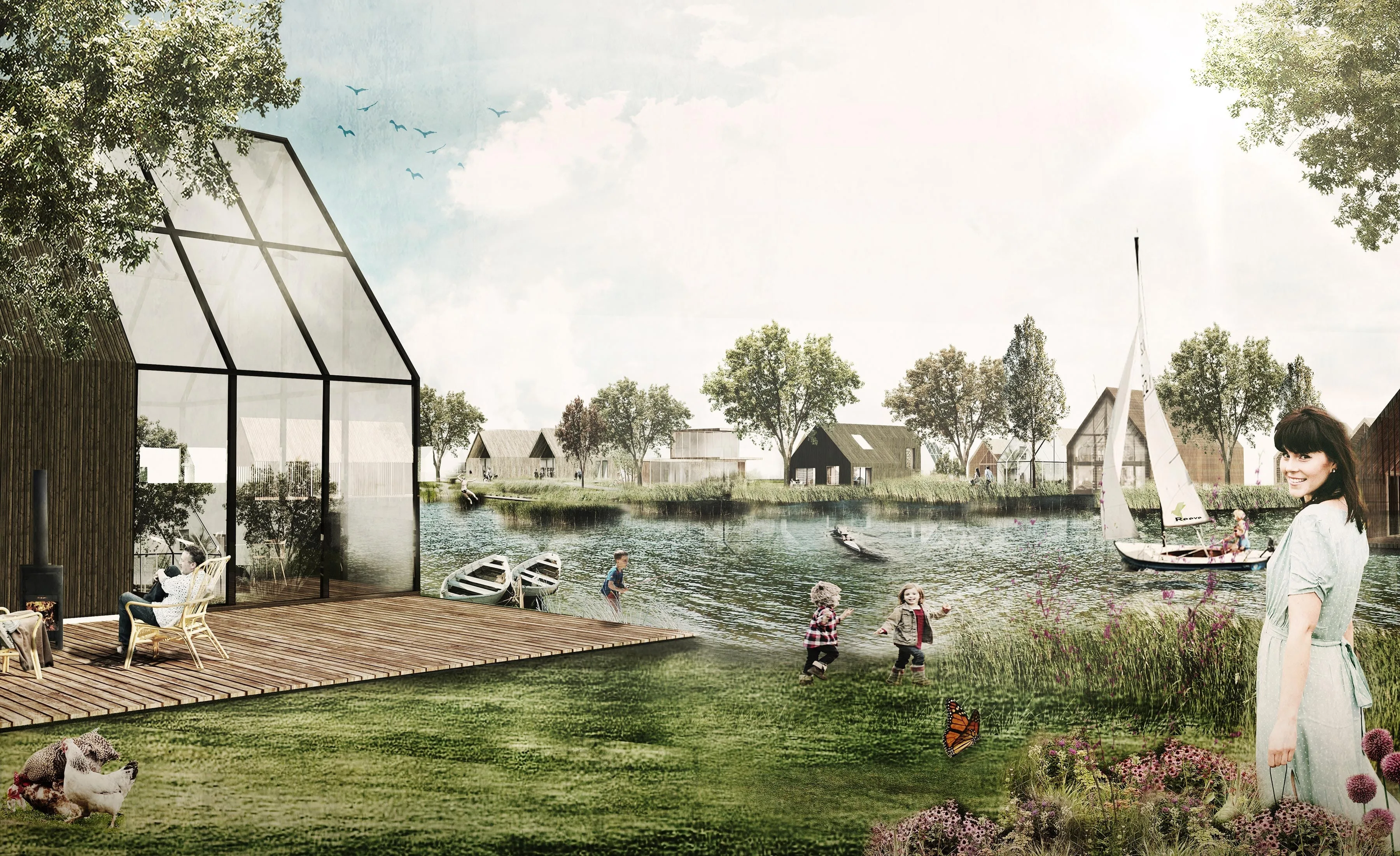 Het omliggende landschap wordt zo ontworpen dat het uitnodigt voor wandelen en ontmoeting