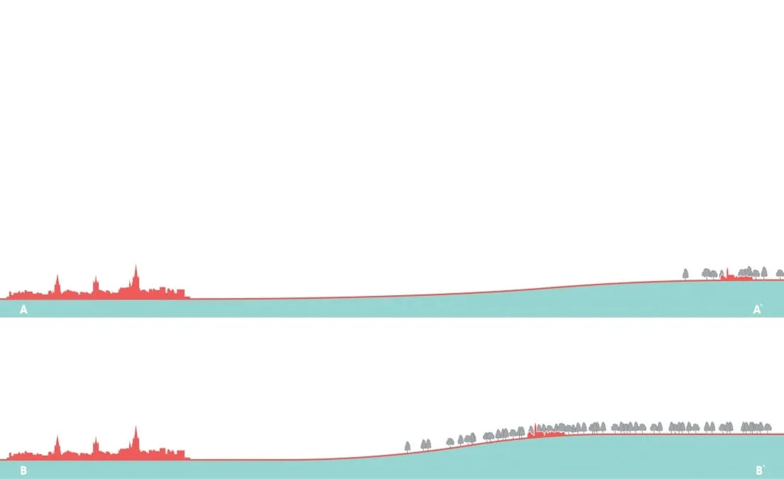 Op de arme heuvelrug wordt het kamertjes-landschap geherintroduceerd voor een hoog-waardige occupatiestrategie. Wonen op de heuvelrug in de kamers, met de bestaande kernen als basis; nieuwe vestigingen langs bestaande linten of op hernieuwde knooperven.