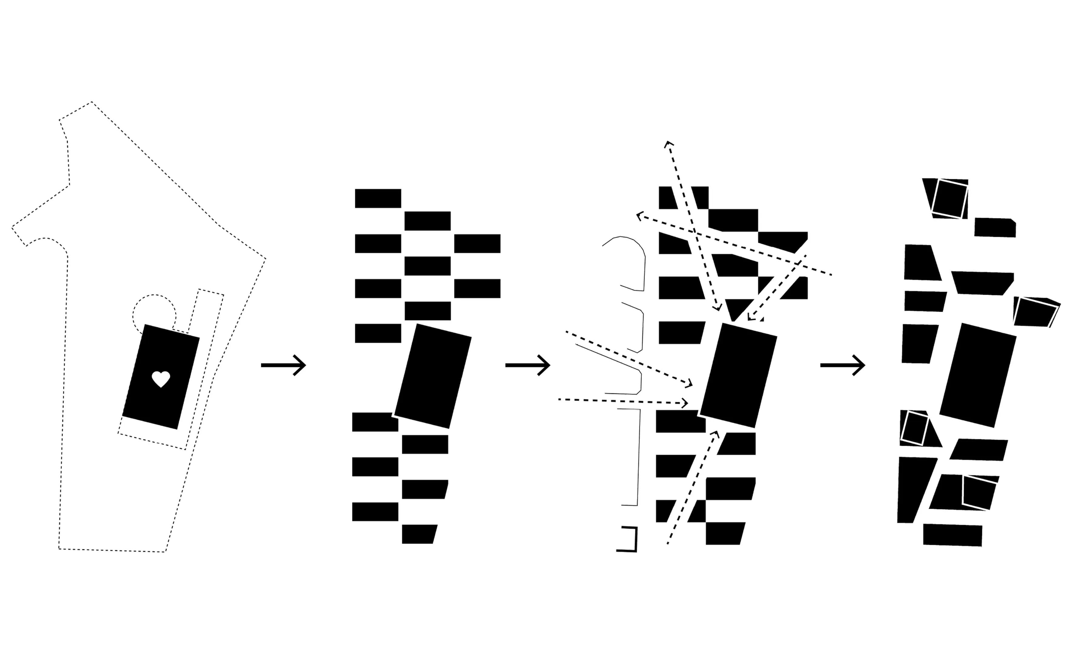 Slimme stedenbouwkundige structuur in 4 stappen:1. EKP-gebouw getransformeerd naar KuBus, het hart van de ontwikkeling 2. Open structuur van gebouwen met een ideale maat 3. Aansluiten op de context met zichtlijnen en plekken 4. Optimalisatie en toevoeging van vier torens als poort van de stad