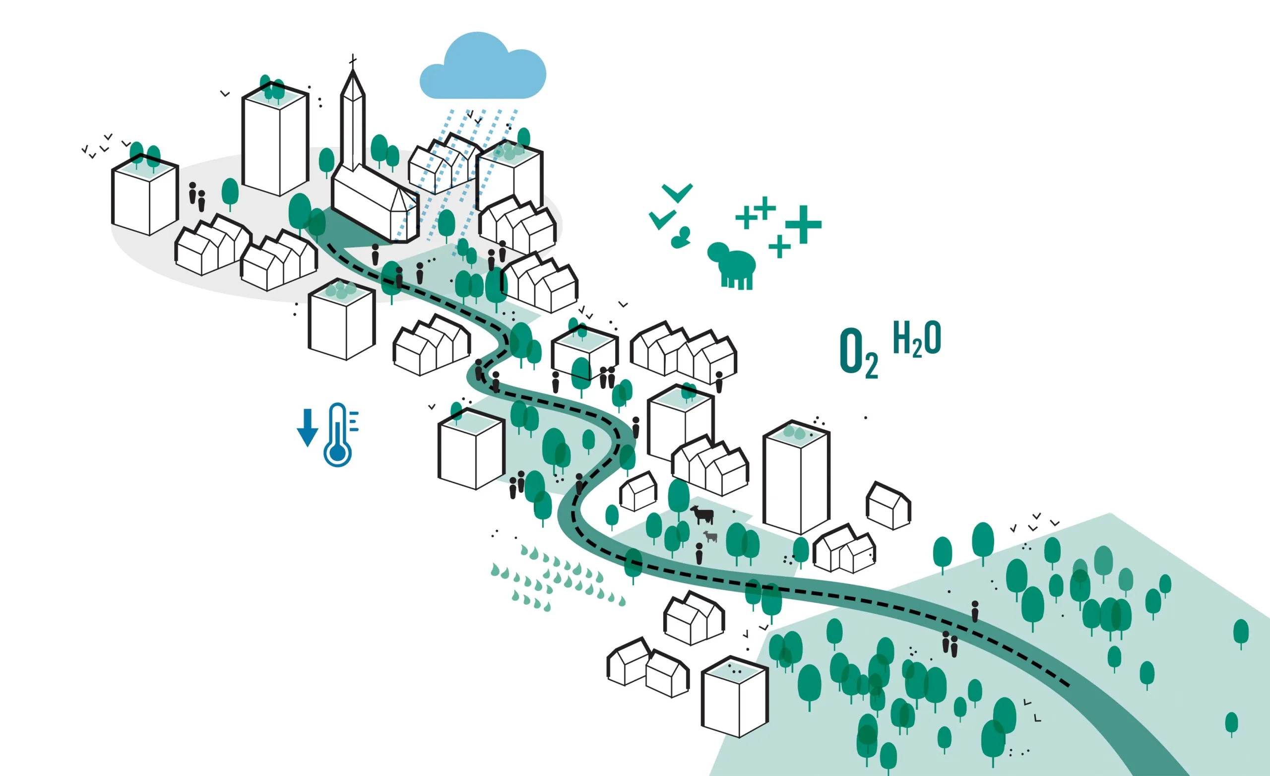 ‘De groenklimaatassen vormen een nieuwe, herkenbare groene stadsstructuur die via bestaande landschappelijke structuren groen, koelte en biodiversiteit van het landschap naar de stad brengen, en mensen van de stad naar het landschap.’