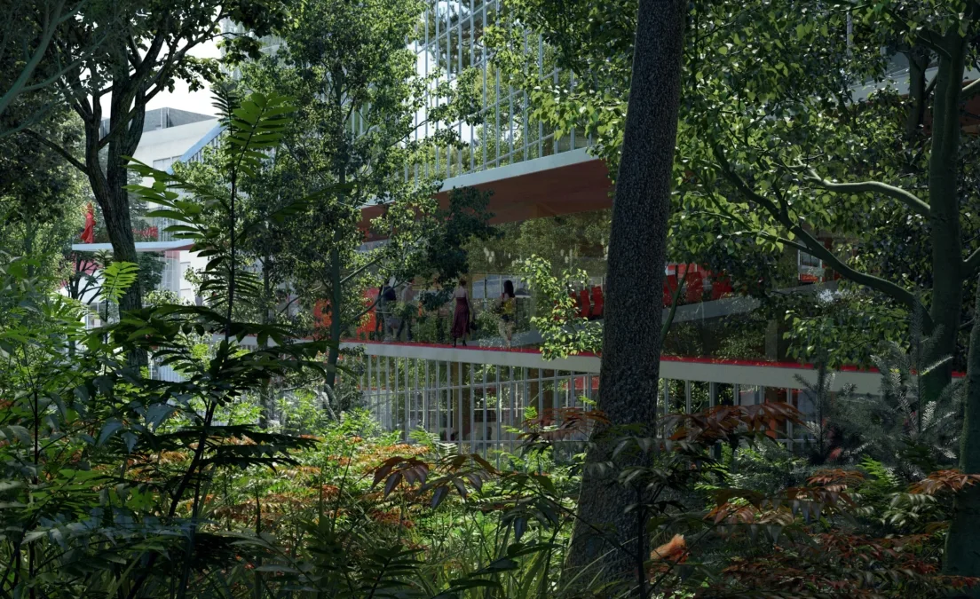 Het ontwerp voor het VDMA (Van der Meulen-Ansems) terrein in het centrum van Eindhoven omvat een uniek stadsbos dat een derde van het terrein beslaat. Het plan geeft invulling aan een duurzaam en inclusief programma, waarbij het creëren van balans in diversificatie een belangrijk uitgangspunt is.